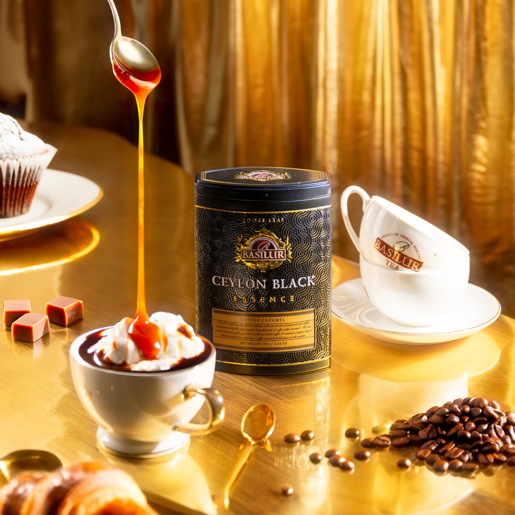 Hva med et møte mellom te og kaffe? Tenk på en fløyelsmyk karamell-kaffekonfekt – slik smaker Coffee Caramel. En original og lagdelt blanding der den tydelige profilen til svart Ceylon-te smelter sammen med intens karamellsødme og et karakteristisk kaffepreg.