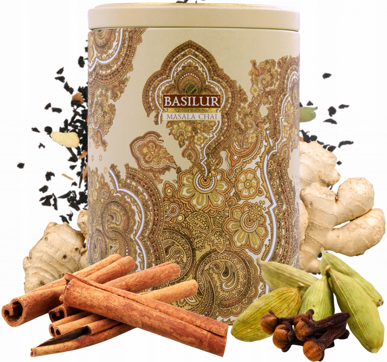 La deg oppsluke av den varme, krydrede magien fra Basilur Masala Chai – en autentisk blanding inspirert av Indias eldgamle tekultur.