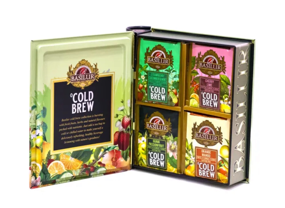 Opplev den ultimate forfriskningen med Basilur Cold Brew Metal Book – en eksklusiv samling av isteblandinger laget av førsteklasses ingredienser og naturlige aromaer.