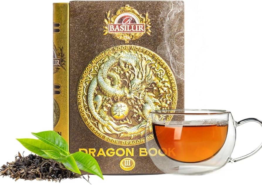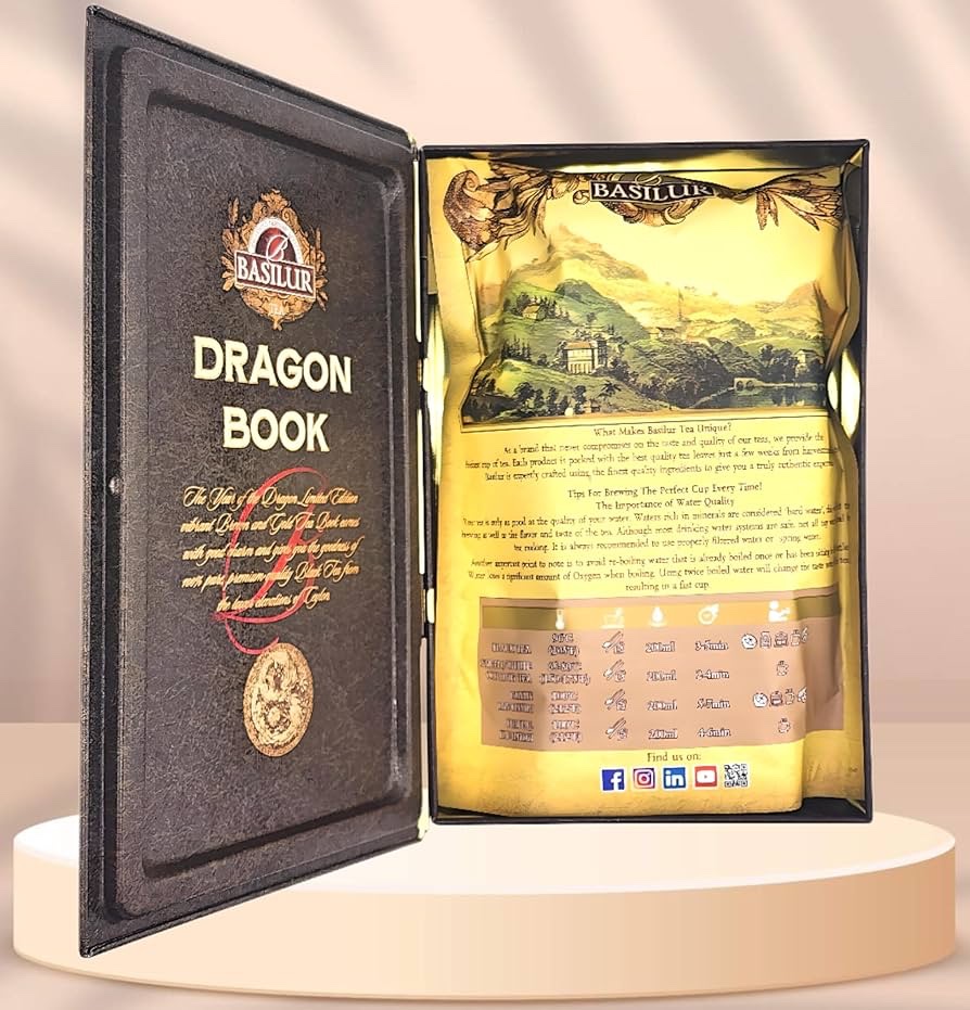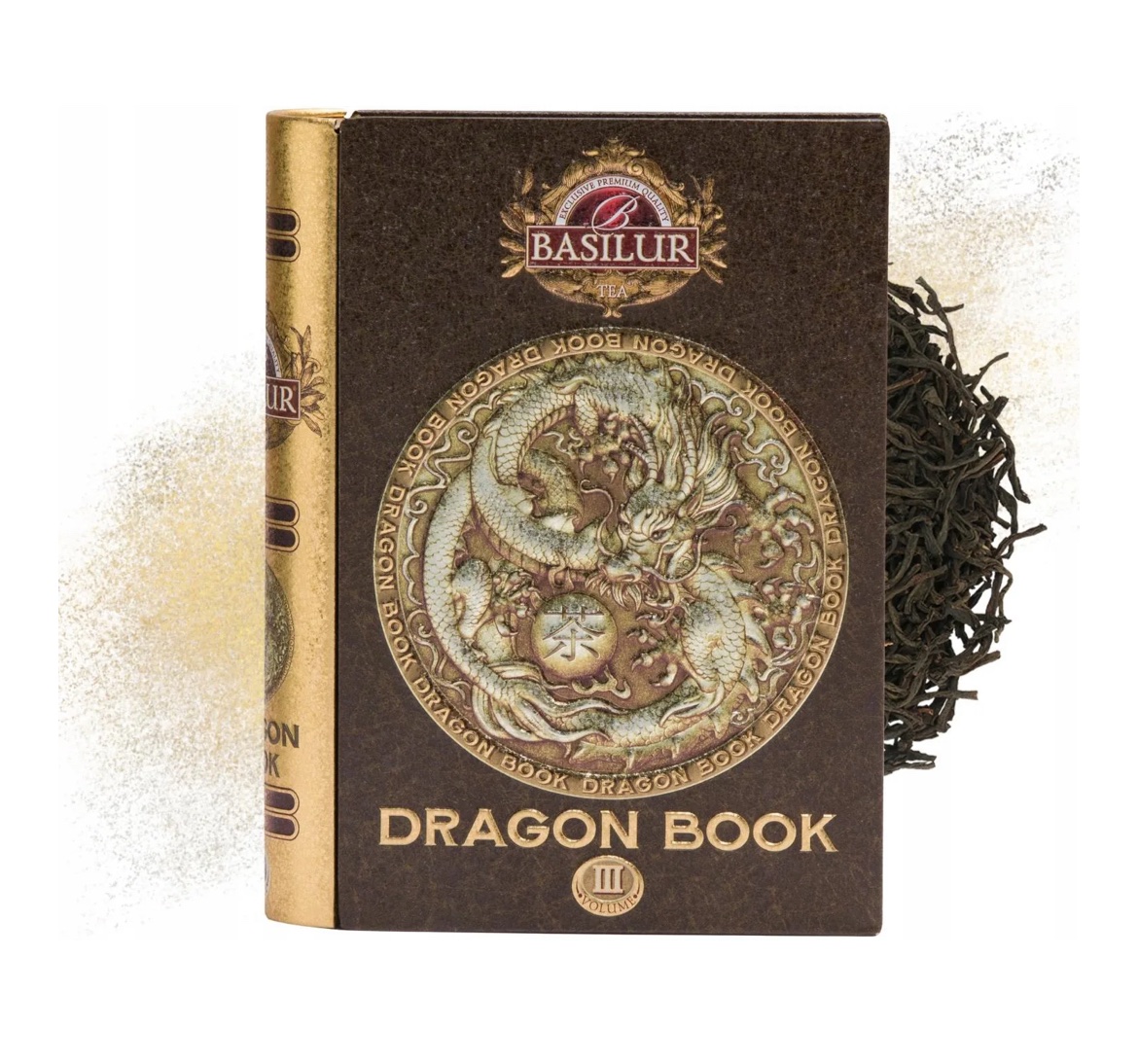 Basilur Dragon Book – Volume III er en elegant og klassisk sort te i en ikonisk bokformet eske – et perfekt punktum for Dragon Book-serien og et sikkert valg for kresne teentusiaster.