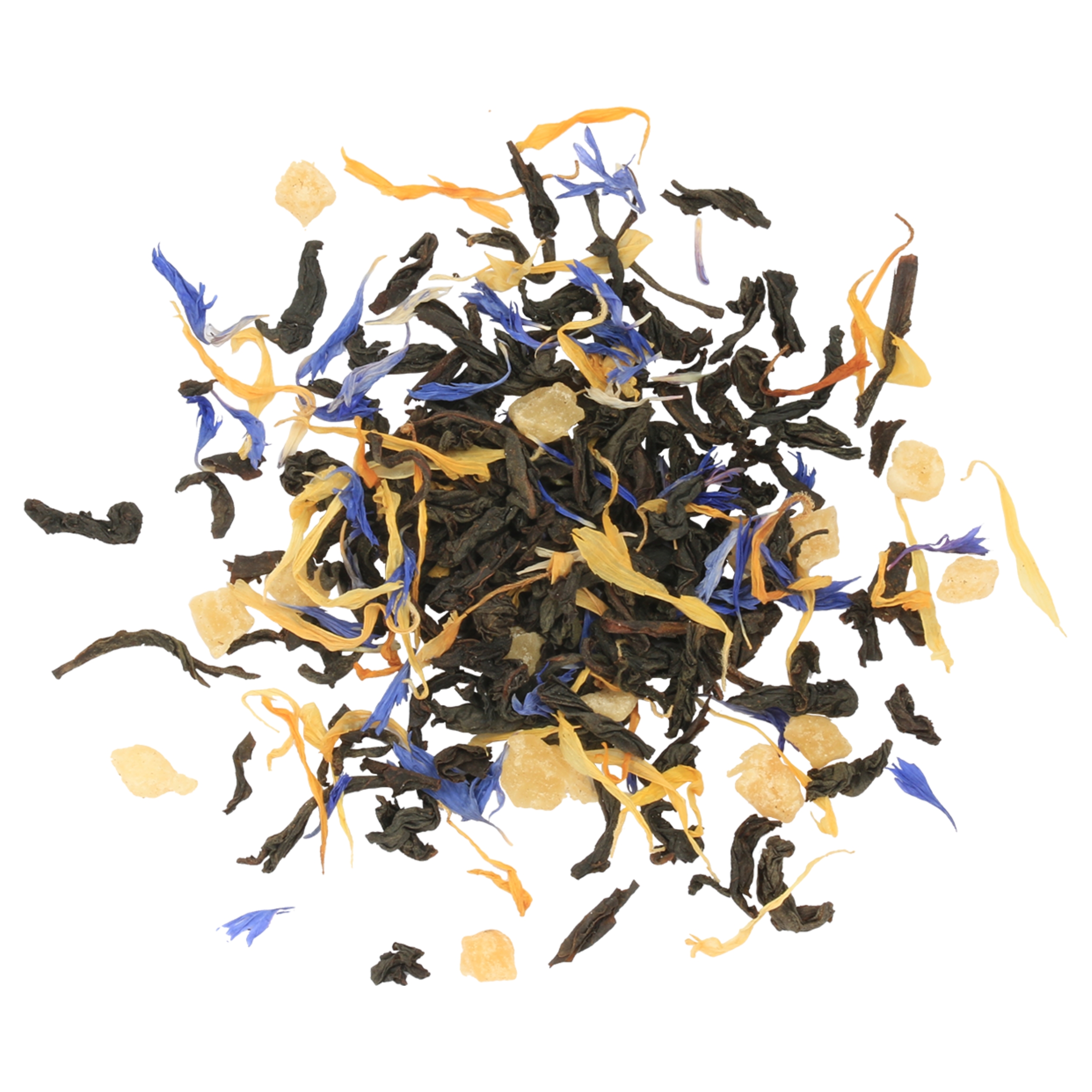 Kornblomst og ringblomst tilfører et floralt preg og gjør teen delikat og visuelt vakker.