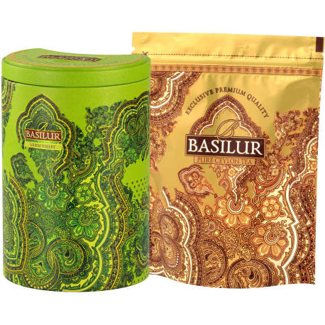 Basilur Orient Green er en elegant og forfriskende grønn te som kombinerer kvalitet, tradisjon og orientalsk estetikk – perfekt for deg som ønsker en ren og naturlig teopplevelse.