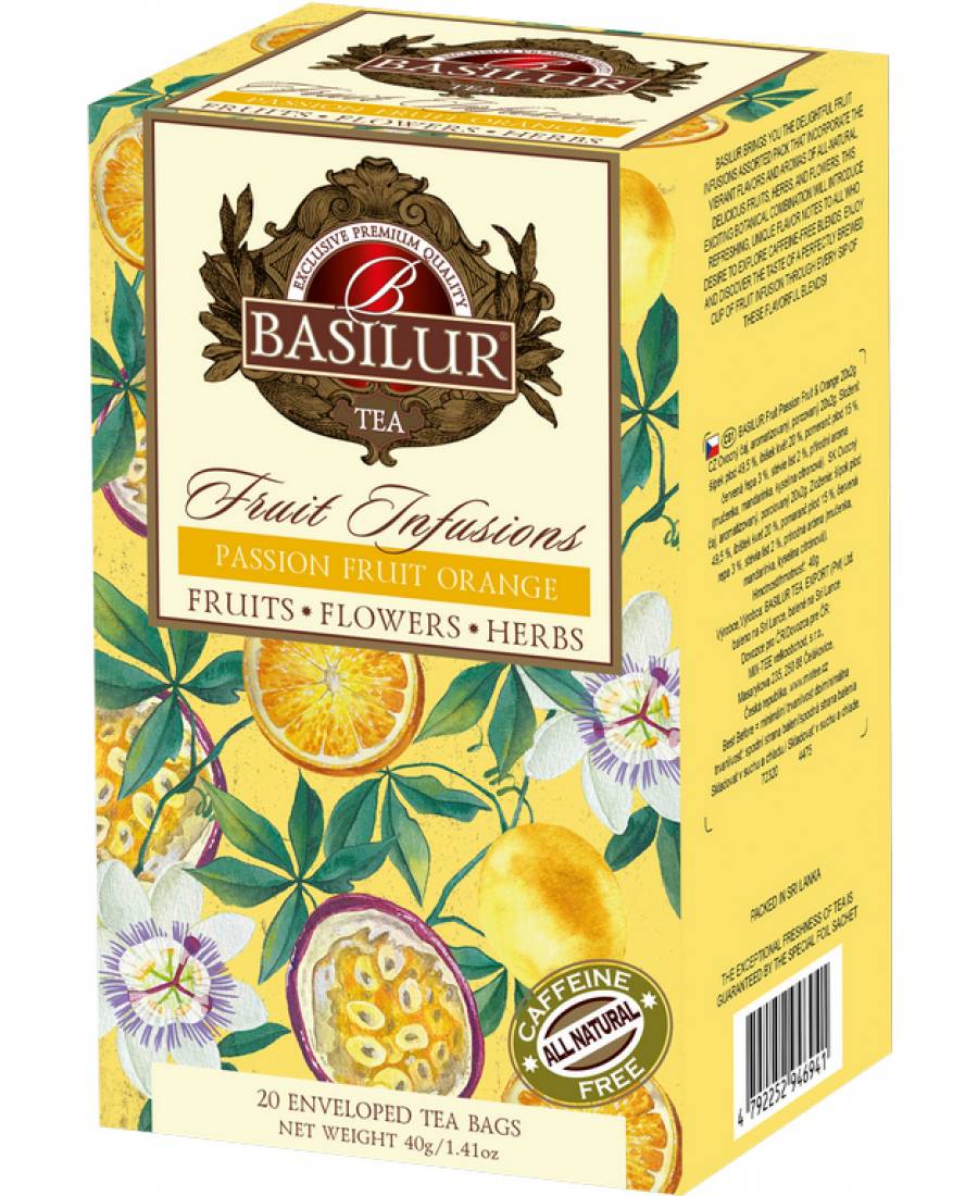 Basilur Passion Fruit & Orange er en fargerik og smakfull fruktinfusjon som kombinerer tropiske frukter med blomster og urter – en perfekt balanse mellom friskhet og naturlig sødme i hver kopp.