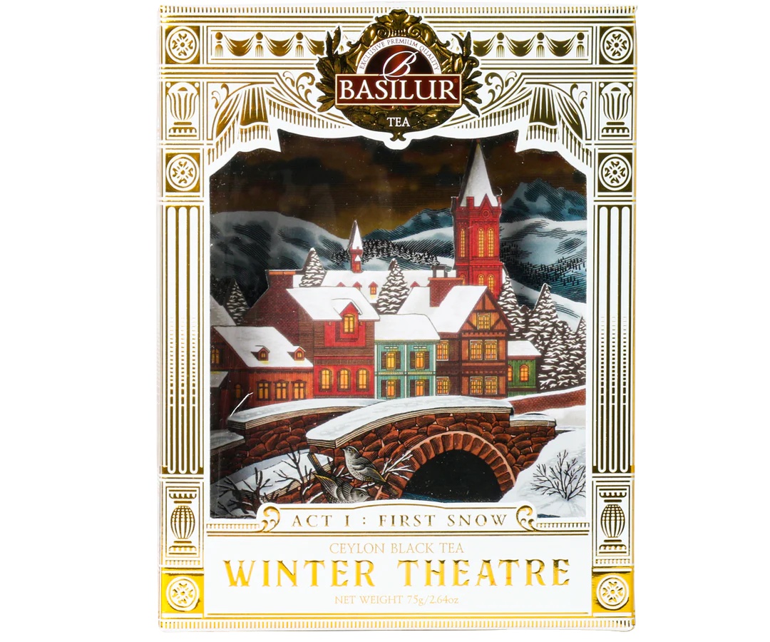 Basilur Winter Theatre – Act I: First Snow er en elegant og klassisk sort te som kombinerer tidløs Ceylon-kvalitet med kunstnerisk design – en rolig og stemningsfull start på Winter Theatre-serien.